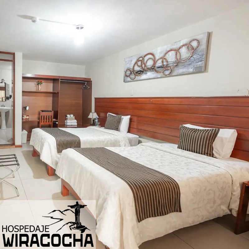El servicio de cama doble en el Hospedaje Wiracocha generalmente consistiría en ofrecer una habitación equipada con una cama doble diseñada para dos personas. Aunque no tengo detalles específicos del Hospedaje Wiracocha, el servicio en hospedajes similares suele incluir: Cama doble cómoda: Una cama más grande que una individual, con colchones confortables y ropa de cama limpia (sábanas, almohadas y cobertores). Limpieza: Servicio de limpieza diario o regular, con el cambio de ropa de cama y toallas. Servicios adicionales: Wi-Fi gratuito, televisión por cable, baño privado o compartido, y provisión de artículos de higiene personal como jabón y champú. Ambiente acogedor: Habitaciones decoradas para brindar un ambiente agradable y cómodo, especialmente para parejas o personas que viajan juntas. Acceso a otras comodidades: Algunas habitaciones podrían incluir acceso a áreas comunes, comedor, o servicios adicionales como desayuno.